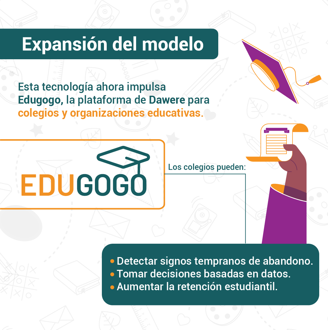 Gracias al uso de Machine Learning, Dawere ha desarrollado un modelo predictivo que permite identificar el riesgo de abandono antes de que ocurra. Esto ha permitido mejorar la tasa de retención y transformar casos críticos en historias de éxito.