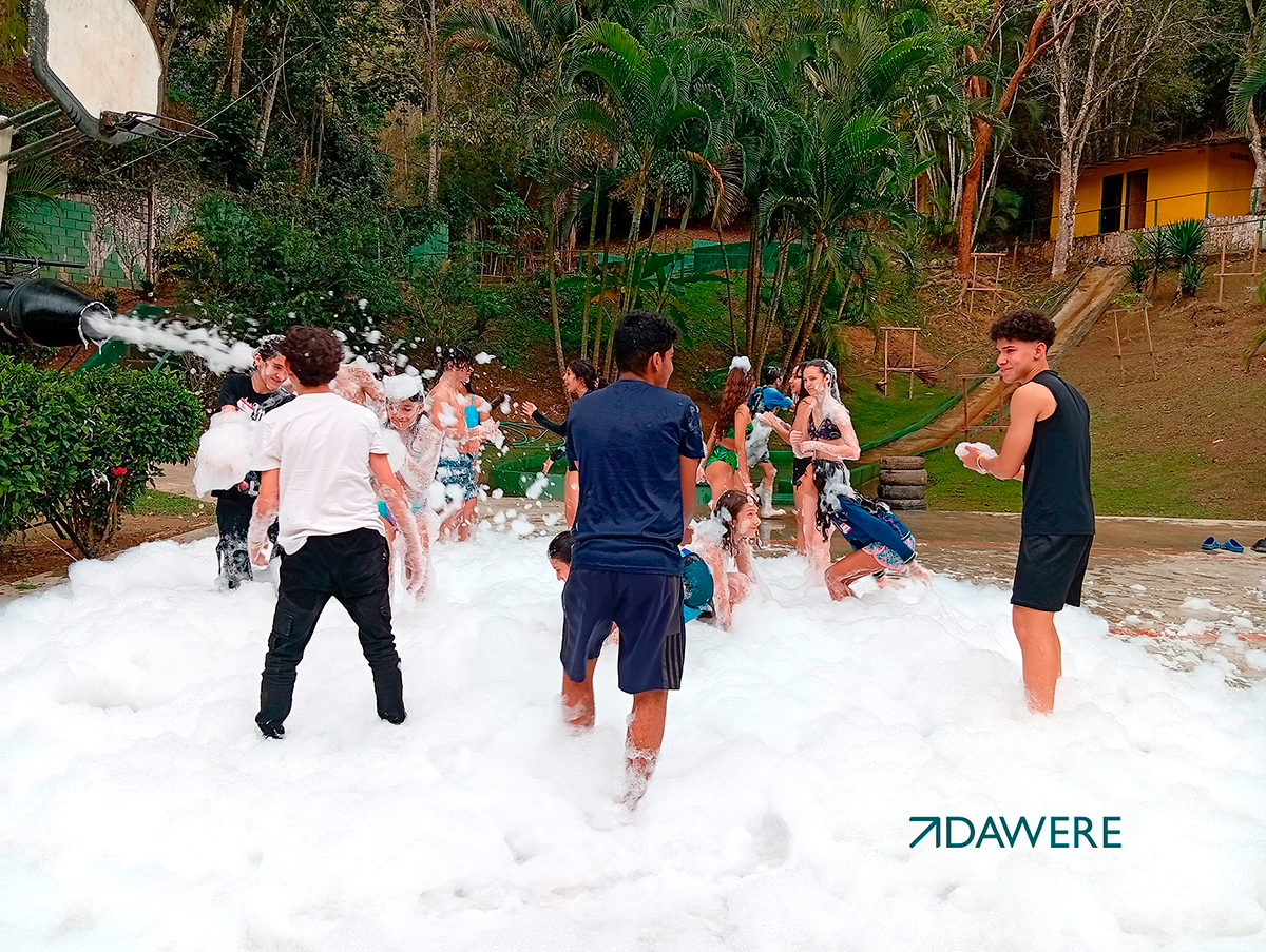 Como era de esperarse, la tirolina fue la reina de la tarde, atrayendo a quienes apostaban por la adrenalina de subir y lanzarse desde la cima de una colina. Además, al volver a tierra, los esperaba una vibrante fiesta de espuma con música y mucho jabón. Fue el broche perfecto para redondear una experiencia llena de entusiasmo.