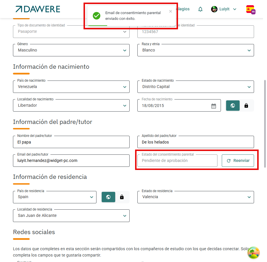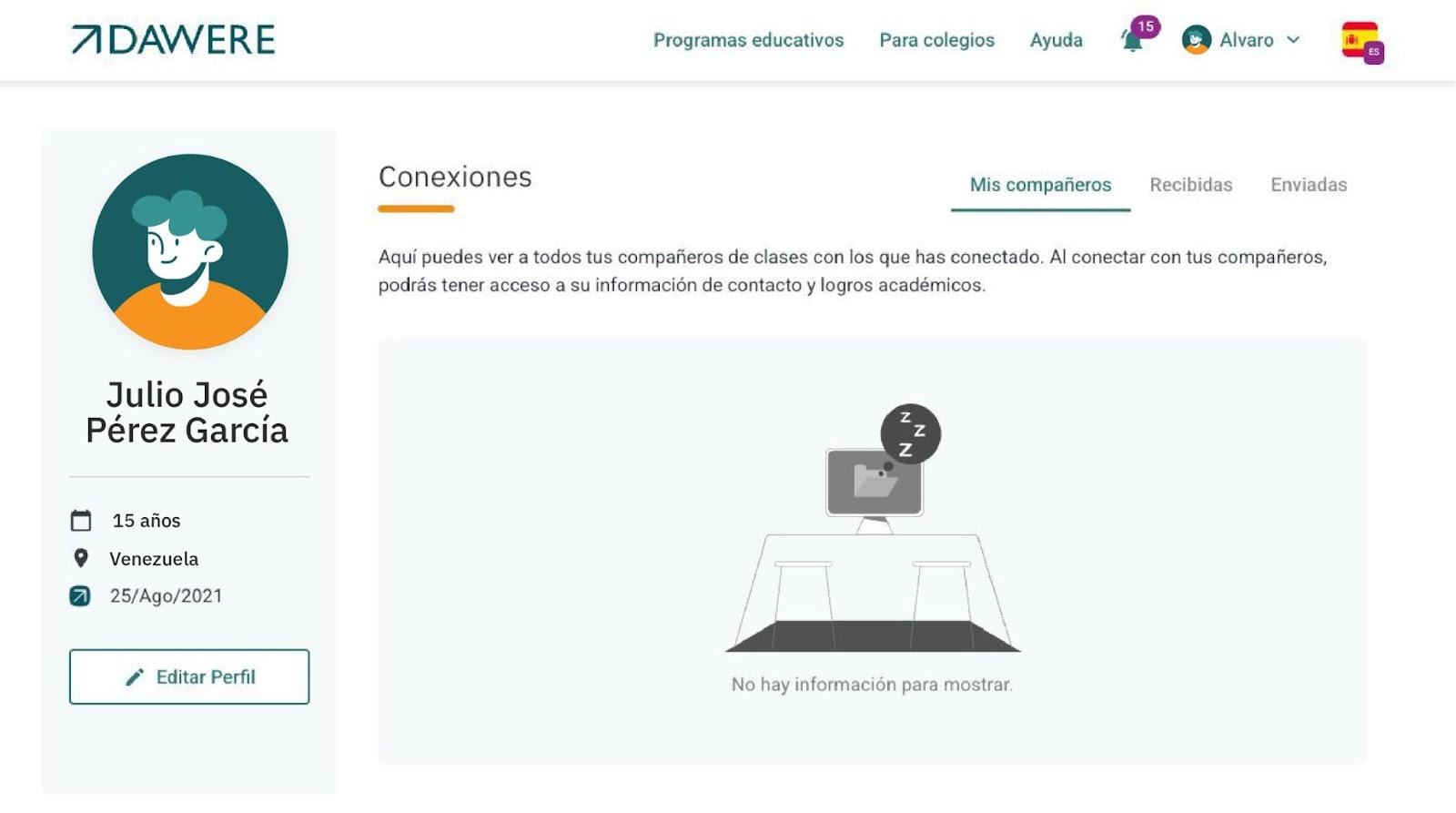 - Protección de menores: los perfiles de estudiantes menores de edad mostrarán únicamente datos básicos. Para compartir información de contacto o redes sociales, se requerirá el consentimiento explícito de sus padres o tutores.