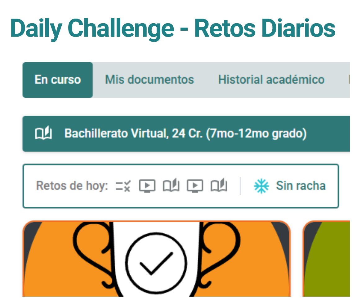 Los retos diarios se presentan en el perfil de los estudiantes.